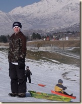 Sledding on the hill below Nana’s house.